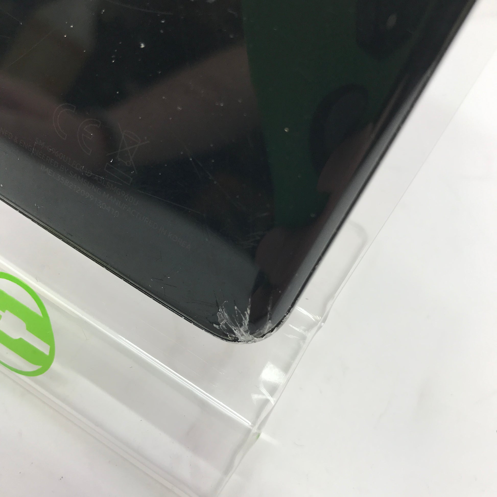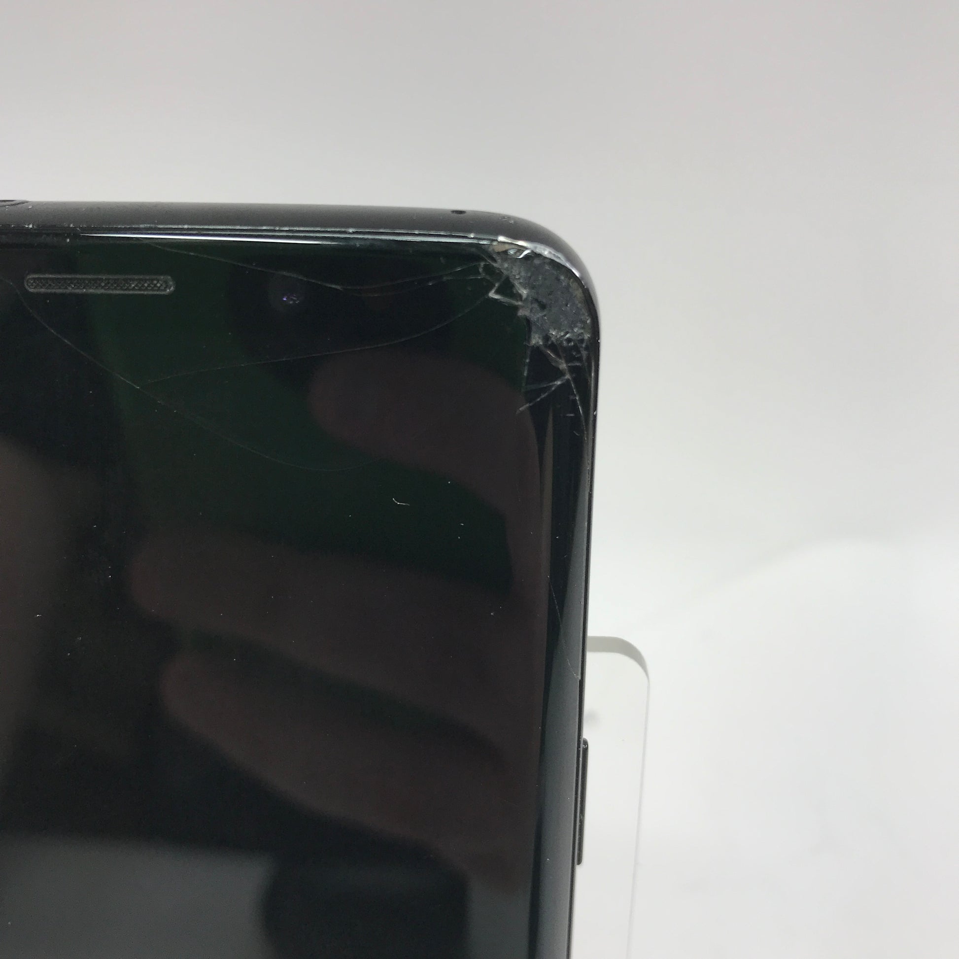 This phone has significant screen damage causing a black spot on the bottom left corner. There are close up pictures of the damage. There are numerous other scratches across the phone. Please view our close up photos, as these are taken of the actual item being offered for sale.